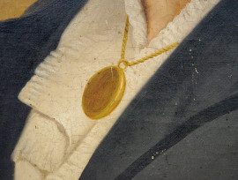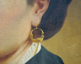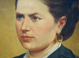 Ritratto di gentildonna, XIX secolo, olio su tela, cm 50x36,5, entro cornice