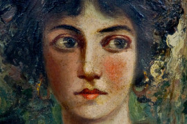 Ritratto di popolana, olio su tela, XIX secolo, firmato in basso a destra, cm 35x25, entro cornice