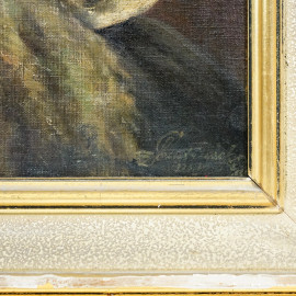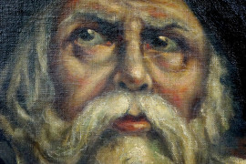 Ritratto di uomo con barba, XX secolo, olio su tela applicata su cartone, cm 42,5x35,5, firmato, entro cornice