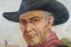 Ritratto di uomo con cappello e sigaretta, XX secolo, olio su tela, cm 50x40, firmato, entro cornice, (difetti)