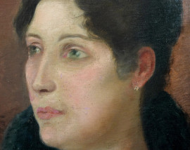 Ritratto femminile, olio su tela, firmato, cm 50x41, entro cornice