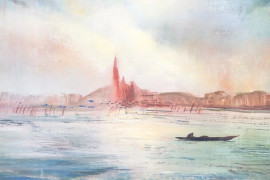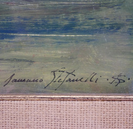 San Giorgio, Venezia, XX secolo, affresco su supporto in compensato, cm 46x61, firmato in basso a destra, entro cornice