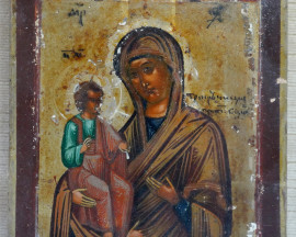 Santissima Madre di Dio dalle tre mani, Russia, XIX secolo, tempera su tavola, cm 12,5x10, entro cornice