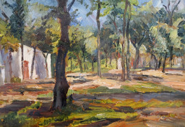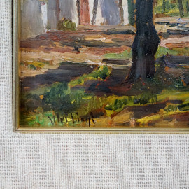 Scorcio di parco, XIX secolo, olio su tavoletta, cm 15x21, firmato, (difetti)