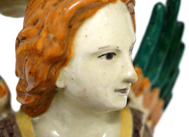 Scultura in ceramica policroma rappresentante un angelo, XX secolo, altezza cm 36