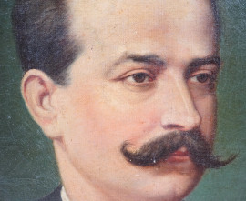 Scuola francese della fine del XIX secolo, Ritratto d'uomo con baffi, olio su tela, cm 51x39,5, entro cornice