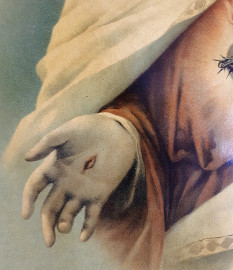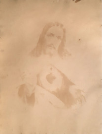 Scuola Portoghese del XIX sec., Sacro Cuore di Gesù, antica cromolitografia su carta, cm 62x47, condizioni di conservazione eccellenti