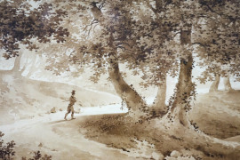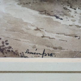 Siméon Fort (1793-1861), Passeggiando nel bosco, acquerello su carta, cm 24x30, firmato in basso, entro cornice