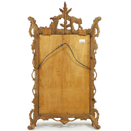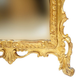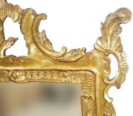 Specchiera con cornice in legno intagliato e dorato, XX secolo, cm 130x74,5, (difetti)