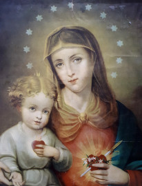 Stampa vintage raffigurante Nostra Signora del Sacro Cuore, XX sec., cm 45x30, con cornice d’epoca