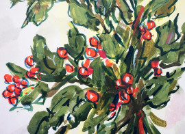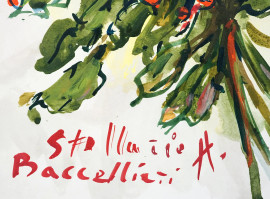 Stellario Baccellieri, Vischio natalizio, tecnica mista su cartone, cm 29x19,5, firmato e datato "Natale 20032, (difetti)