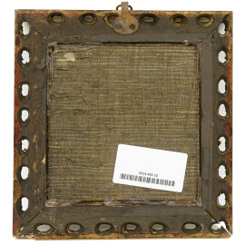Testa di Cristo coronato di spine, XX secolo, bronzo e pietre varie, entro cornice, cm 9x8, (difetti)