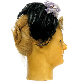 Testa femminile in cera policroma con occhi in vetro, XX secolo, cm 29x20