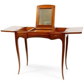 Toeletta in noce con specchio a scomparsa centrale, tre vani, XX secolo, cm 73,5x75,5x43,5, (difetti)