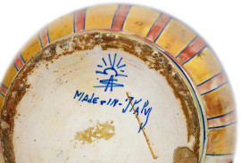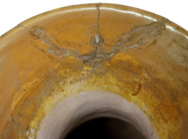 Vaso in ceramica a lustro nei toni del blu e del giallo, XX secolo, altezza cm 29 (difetti)