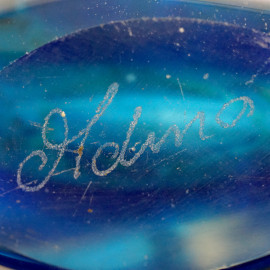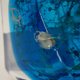 Vaso in vetro blu di Mdina di Malta, altezza cm 16,5, iscrizione a graffio "Mdina", (difetti)