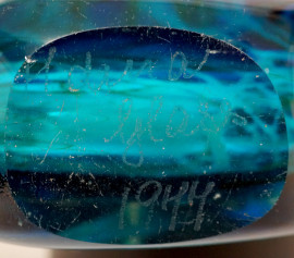Vaso "Pesce / Testa d'ascia" in vetro blu di Mdina di Malta, altezza cm 23, iscrizione a graffio "Mdina 1977", (difetti)