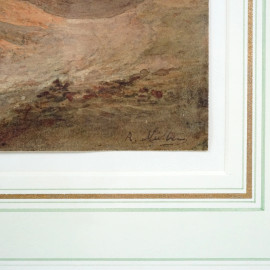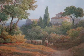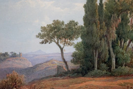 Veduta con il mausoleo di Santa Costanza, acquerello su carta, firmato in basso a destra, XIX secolo, cm 23,5x32,5, entro cornice