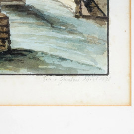 Veduta del Foro Romano, acquerello su carta, firmato in basso a destra, XIX secolo, misure comprese passepartout cm 40x47, entro cornice