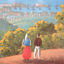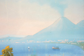Veduta del Golfo di Napoli, tempera su carta, cm 28x40,5, firmato in basso a sinistra, entro cornice, (difetti)