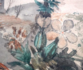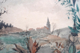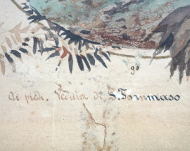 Veduta del Monte Re, acquerello su carta, iscritto e datato 1 Maggio 1887, cm 23,5x30, entro cornice (difetti)