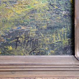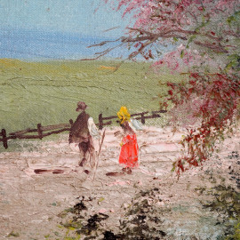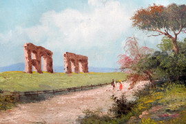 Veduta della Via Appia con figure, olio su tela, firmato, cm 36x55, entro cornice