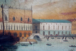 Veduta di Venezia, sec. XIX, olio su tela, cm 35,5x57,5, entro cornice, (difetti)