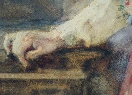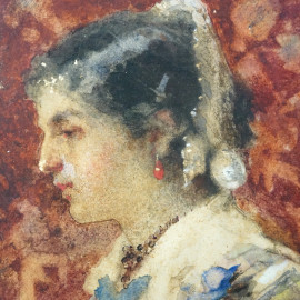 Vespasiano Bignami (1841-1929), Fanciulla con cero, acquerello su carta. cm 32x23,5, entro cornice, (difetti)
