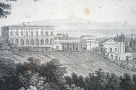 Villa Albani presa dalla Villa Patrizi, incisione, XIX secolo, cm 42,5x54,5, entro cornice