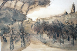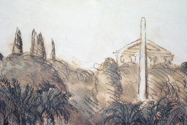 Villa Torlonia, inchiosto acquerellato su carta, XX secolo, cm 24x33, entro cornice