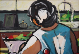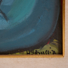 Achille Sdruscia (Roma 1910 - 1994), Donna seduta, olio su tela, cm 70x60, entro cornice