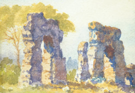 Acquedotto romano, XX secolo, acquerello su carta, cm 18x13, entro cornice