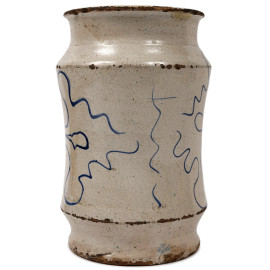 Albarello in ceramica policroma con decoro raffigurante un profilo femminile, XIX secolo, altezza cm 21,5 (difetti)