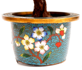 Alberello decorativo in materiali vari, Cina, XX secolo, altezza cm 28, (difetti)