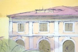 Alberto Sughi, Villa Romana, litografia a colori, prova d'artista (II/XII), firmato in basso a destra, cm 62x84,5, entro cornice