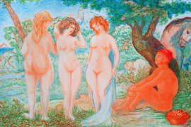 Aligi Sassu, Il giudizio di Paride, litografia a colori, prova d'artista (V/XII), cm 67x95,5, firmato in basso a destra, entro cornice