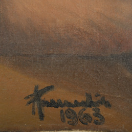 Amleto Pannocchia (1911-1987), Giocatori di carte, olio su tela, cm 100,5x70,5, firmato e datato "1963" in basso a destra, (difetti)