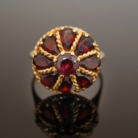 Anello in oro 18 KT con granati, peso gr. 6,2, misura n. 13