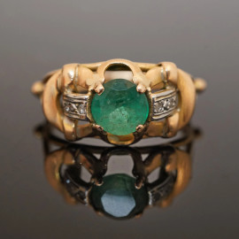 Anello in oro 18 KT con smeraldo e brillantini, peso gr. 4, misura n. 16
