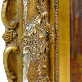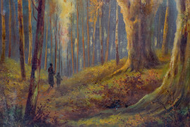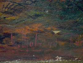 Bosco in autunno, olio su tela, firmato in basso a destra, cm 107x61, entro cornice, (difetti)