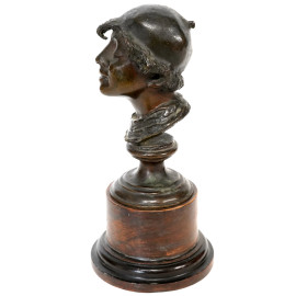 Bustino di scugnizzo, XX secolo, bronzo su base in legno, firmato, altezza cm 19 (difetti)