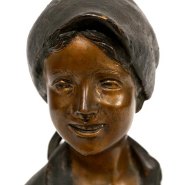 Busto di fanciulla, XX secolo, bronzo su base in marmo, firmato, altezza cm 20,5 (difetti)