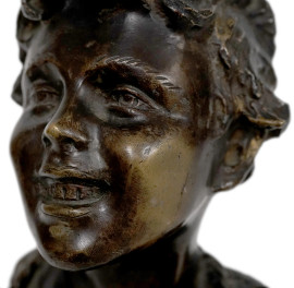 Busto di scugnizzo, bronzo su base lignea, XX secolo, altezza cm 29, (difetti)
