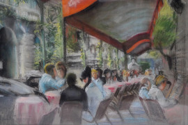 Café de Paris Restaurant, pastelli su carta, firmato in basso a sinistra, cm 33.5x48.5, entro cornice