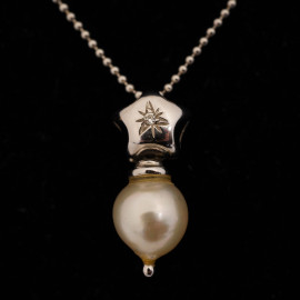 Catenina in oro bianco con ciondolo con perla, lunghezza cm 50, peso gr 4,4
