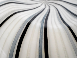 Centro tavola in vetro nei toni bianco, del grigio e del nero, XX secolo, cm 15,5x41