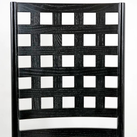 Charles Rennie Mackintosh (Glasgow 1868 - Londra 1928), per Cassina, sedia con schienale alto in frassino ebanizzato, cm 140x41x34,5, (difetti)