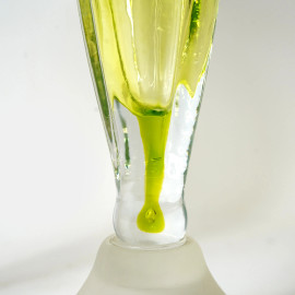 Coppia di candelieri in vetro verde e satinato, XX secolo, altezza cm 32,5