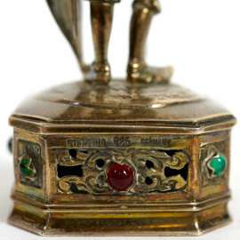 Coppia di cavalieri in argento, Germania, XX secolo, peso gr. 290, altezza cm 13,5