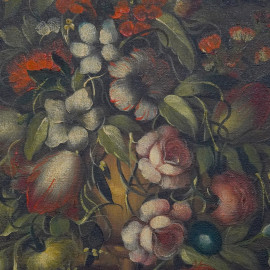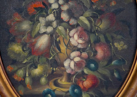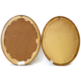 Coppia di nature morte con vaso di fiori, XX secolo, olio su compensato in assetto ovale, cm 40x30, entro cornice